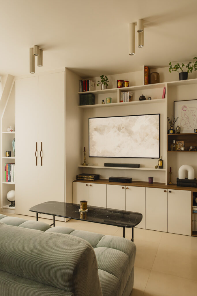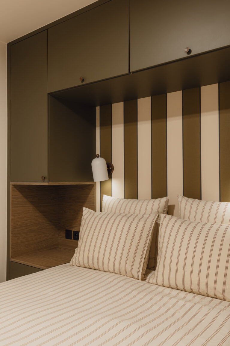 – Chambre : ambiance douce, tête de lit travaillée, couleurs apaisantes.